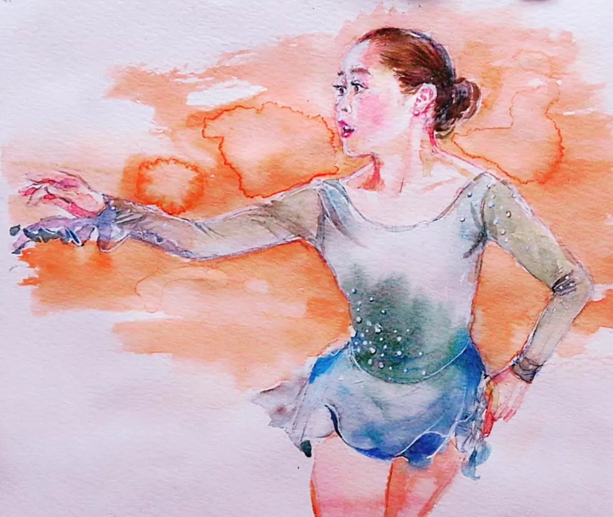 とても美しいプロスケーターがデビューしました💎✨⠀⠀ ⠀ #satokomiyahara #宮原知子⠀ #soi2022 ⠀ #watercolor #水彩⠀ ⠀ 📷 : サンスポ ⠀⠀
