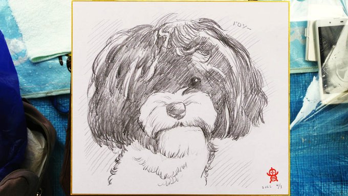 宮崎台ふる里さくら祭りでお描きした #似顔絵 、お客様に許可いただきアップ!✍️😊 もっふぁもっふぁのワンコ、ドロシーちゃん🐶 ご持参のお写真からお描きしました♪ #鉛筆画 #絵描きさんと繋がりたい #イラスト好きな人と繋がりたい #宮前区 #宮崎台さくら祭り #さくら祭り