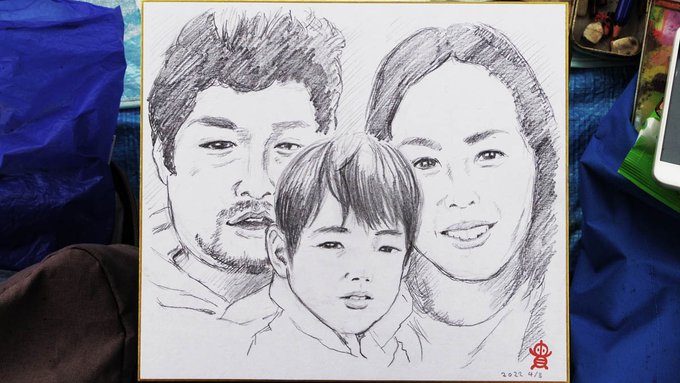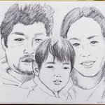 宮崎台ふる里さくら祭りでお描きした #似顔絵 、お客様に許可いただきアップ!✍️😊 お子さんとお母さんお父さんの三人ご家族✨ 幸せ感を絵に込められたかな?🎨 雨の中ありがとうございました🙏 #鉛筆画 #絵描きさんと繋がりたい #イラスト好きな人と繋がりたい #宮前区 #宮崎台さくら祭り #さくら祭り