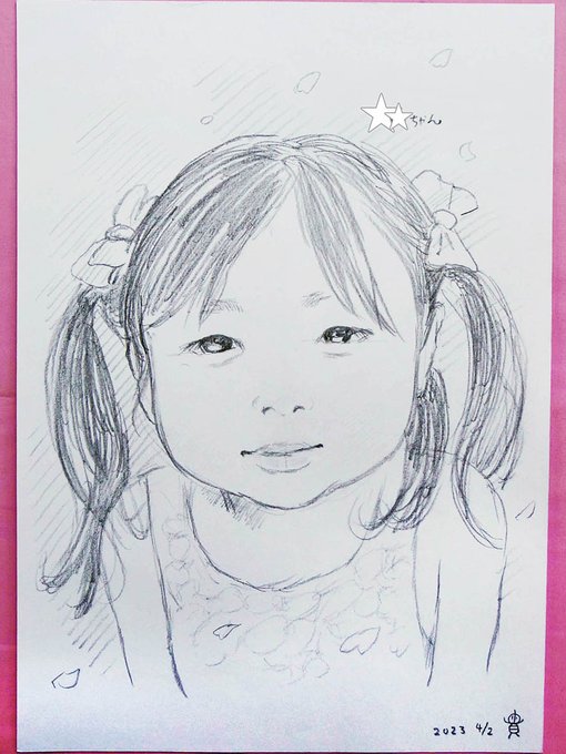 『宮崎台ふる里さくら祭り』でお描きした似顔絵、お客様に許可いただきアップ!✍️😊 この子もたしか新1年生だったかと🌸 桜の花がよく似合う優しい表情が印象的でした🌸 #宮前区 #宮崎台さくら祭り #絵描きさんと繋がりたい #イラスト好きな人とつながりたい #似顔絵