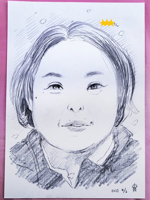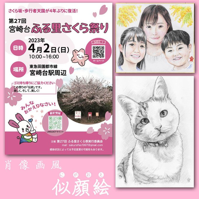 『宮崎台ふる里さくら祭り』でお描きした似顔絵、お客様に許可いただきアップ!✍️😊 この春大学入学で引っ越して来たばかりの学生さん🌸 そして貴房と同じ茨城県の出身とのこと! 嬉しい出会いでした✨ #宮前区 #宮崎台さくら祭り #絵描きさんと繋がりたい #イラスト好きな人とつながりたい #似顔絵