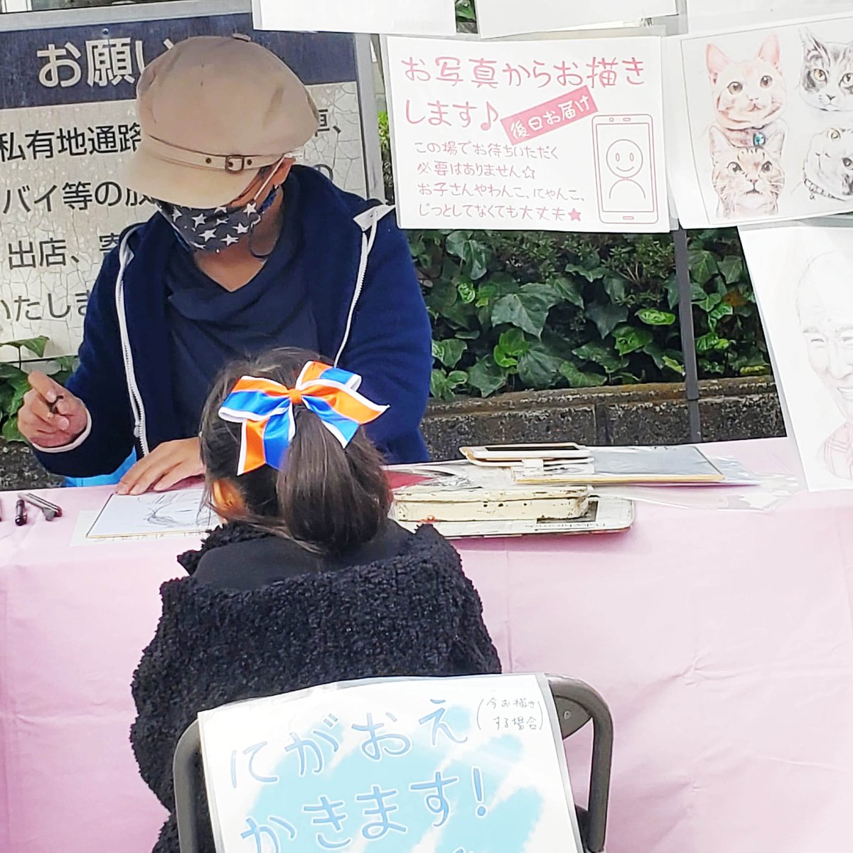 『宮崎台ふる里さくら祭り』でお描きした似顔絵、お客様に許可いただきアップ!✍️😊 チアリーディング出演後似顔絵に来てくれました🌟 笑顔が眩しい✨ お知り合いが後ろ姿を撮っててくださいました🥰 #宮前区 #宮崎台さくら祭り #絵描きさんと繋がりたい #イラスト好きな人とつながりたい #似顔絵