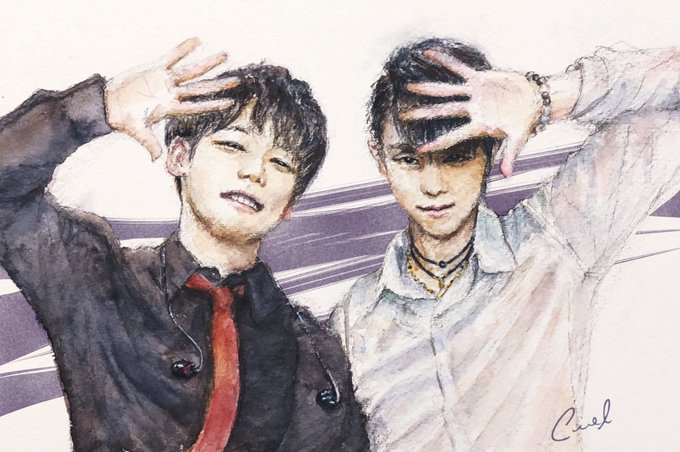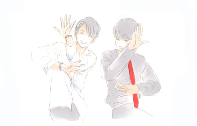 かわいすぎて描くしかなかった「せーの!うぇーい!」🤣 きめポーズの瞬間はお顔が隠れちゃってるから敢えてその直前で💕あまりにも楽しそうな2人の姿に見てるこちらも幸せいっぱい!ありがとう!✨ #FaOI2022静岡 #羽生結弦 #宮川大聖