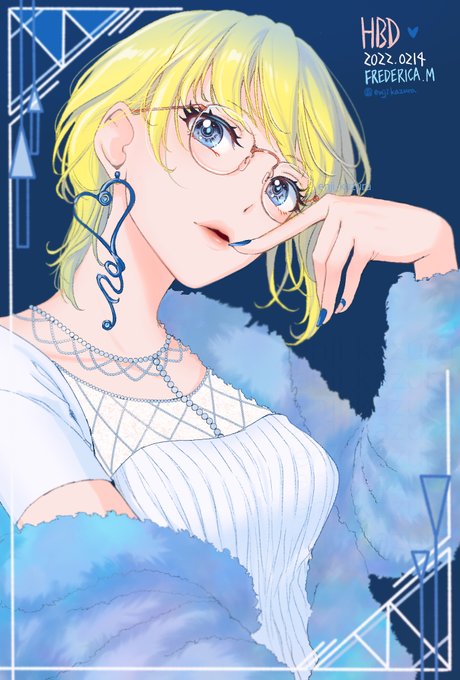 できたー!! クールで青色主体のメガネなフレちゃん描きたかった!! お誕生日おめでとうフレちゃん!!!! #宮本フレデリカ #宮本フレデリカ誕生祭2022 #宮本フレデリカ誕生祭 #宮本フレデリカ生誕祭