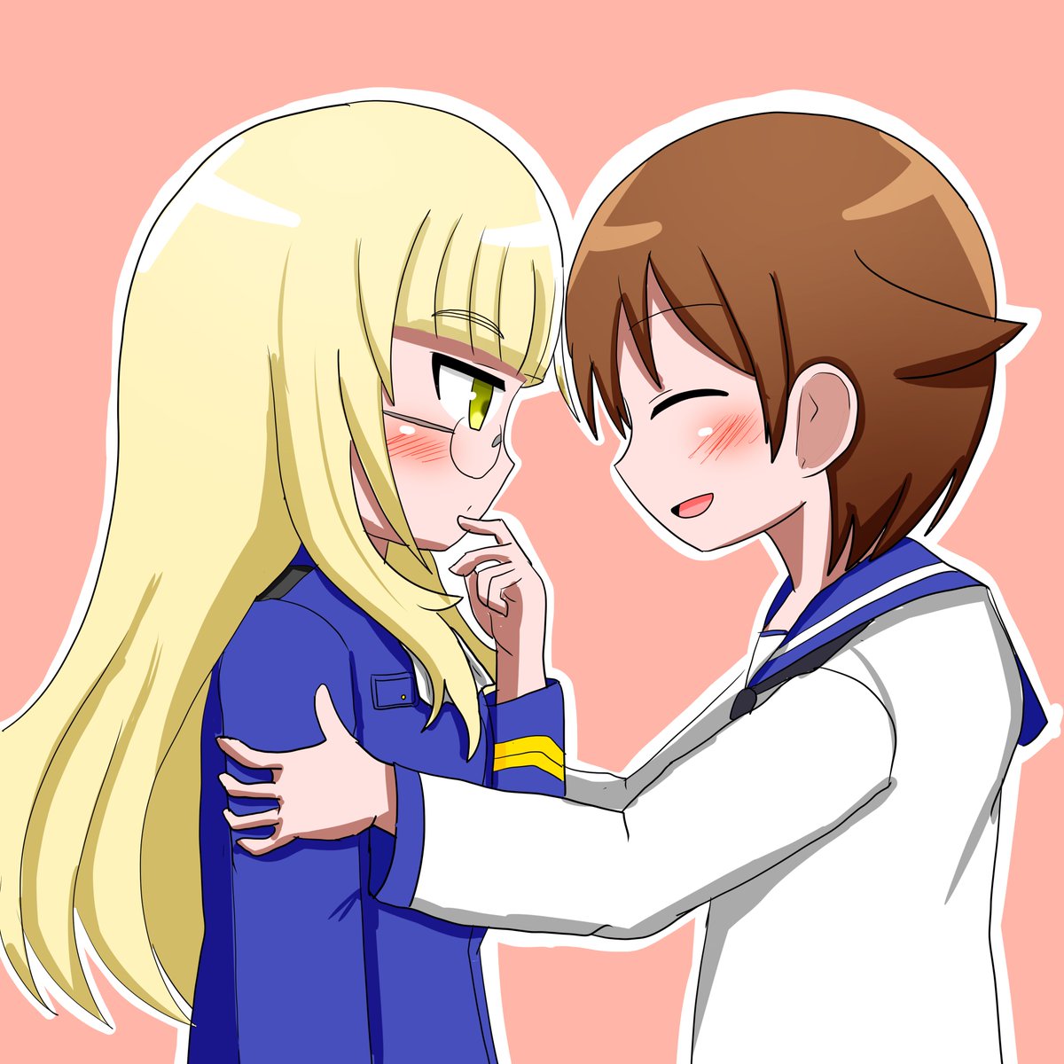 みほーあけのーよしか | Aikazilla #pixiv pixiv.net/en/artworks/90… #ガルパン #西住みほ #ハイスクール・フリート #岬明乃 #ストライクウィッチーズ #宮藤芳佳