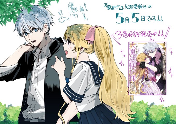 家逃げの次回更新日は5月5日です!🌸🦋 今までのお話を読み返してお待ちください~! イラストは現代制服🧑🎓👩🎓な二人です 🆕最新3巻発売中です!!3巻にはおめかしデート回も収録!🫣❤️よろしくお願いします!🙇♀️ #家逃げ #ガンガンONLINE ganganonline.page.link/9WRYR9SeNB6fWT…