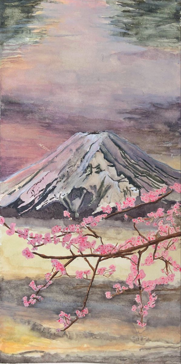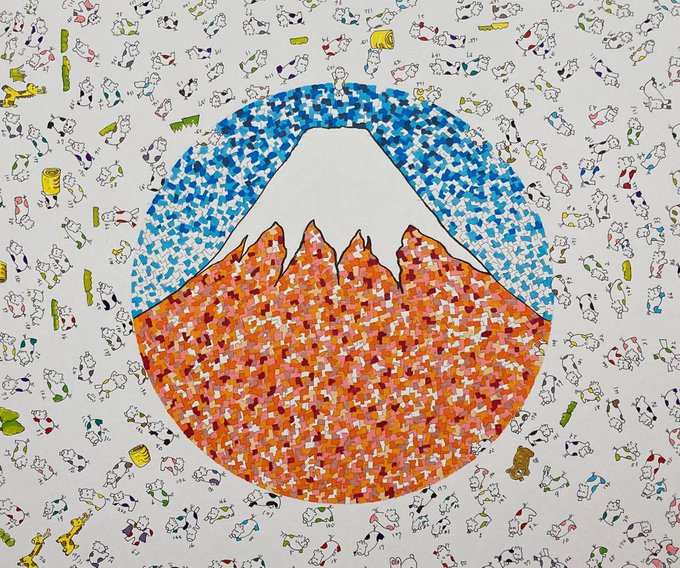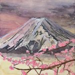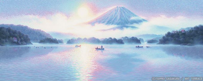 ブルートレインと駅 / Blue Train and Station #mtfuji #popart #landscapepainting #nostalgic #bluetrain #artistontwitter #下吉田駅 #駅 #富士山 #富士 #ブルートレイン #空想画 #みんなで楽しむTwitter展覧会 #芸術の輪 #アートの好きな人と繋がりたい #現実と空想のコラボレーション