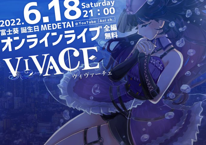 富士さん誕生日!めでたい! 本日18日(土)21時よりYouTubeで「VIVACE ~ヴィヴァーチェ~」ライブ開催!全編無料! アーカイブは残らないので、せっかくだから是非「生」で見て! youtu.be/PowHBeaxyfg #富士葵誕生日ライブ2022 #富士葵誕生日2022 #葵の絵