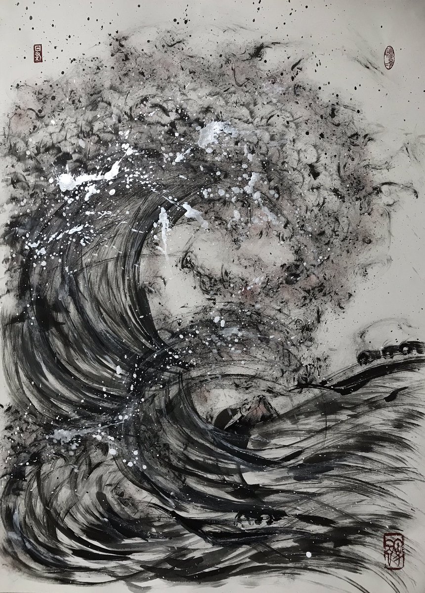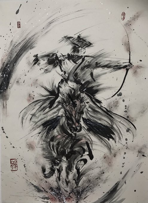墨絵 #流鏑馬 墨絵 #富嶽三十六景 #神奈川県沖波裏現代〜未来 諸事情で今回の東京・大阪のイベントでは出しませんが、年内には 世の中へと出ますので、楽しみに☆ shusumie.com #墨絵 #筆を使わない墨絵師