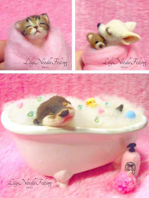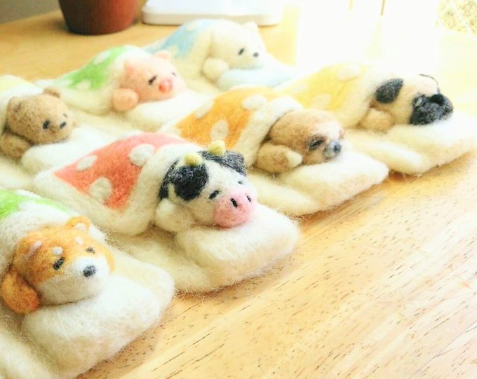 #寒くなってきたので心が暖かくなる画像で暖をとろう 本当に寒くなってきましたね。 ゆっくりお風呂に入って、毛布にくるまって暖かくしておやすみください♡ #羊毛フェルト #needlefelting