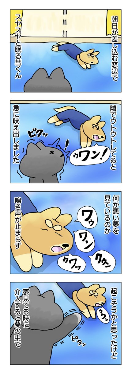生きとし生けるものは寝ぼけたり寝言いう|めぐー (me goo) コミックエッセイ☀️イラスト/ぼちぼちやっていきます😊 #note #ペットとの暮らし note.com/rushtokyo_net/… #エッセイ漫画 #寝言 #寝ぼけ #犬 #拡散希望RTおねがいします