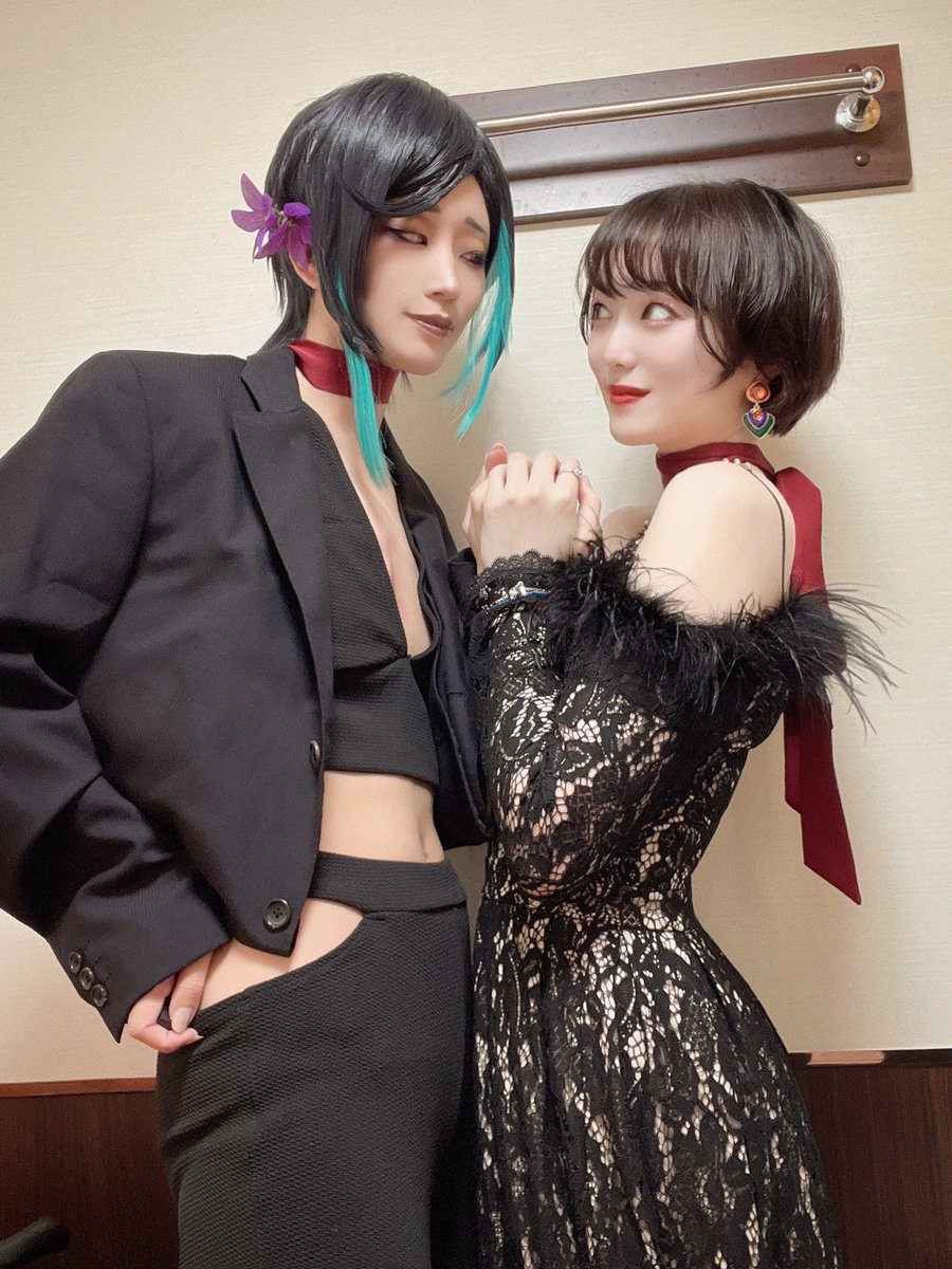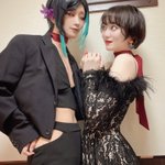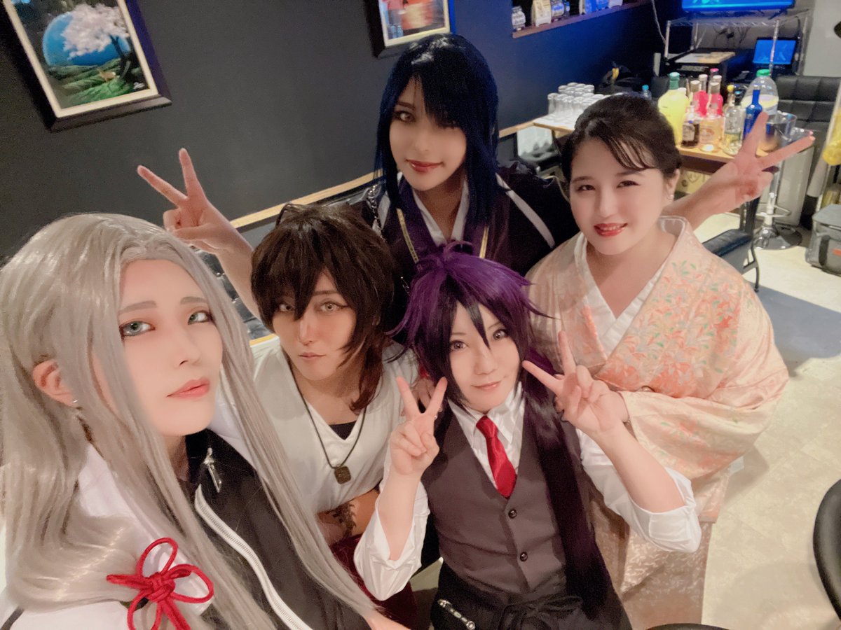 主の近似として #審神者専用Lounge久邇 行ってきました❤️🖤 ご飯もお酒も美味しかったし、 めちゃくちゃ楽しかった〜❗️❗️🍾✴︎ .。 主とスカーフお揃いだし本日の衣装最高なので見て😏