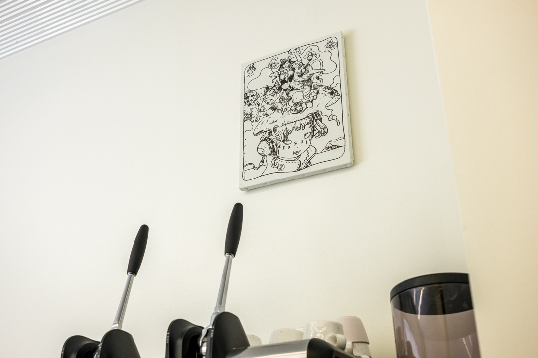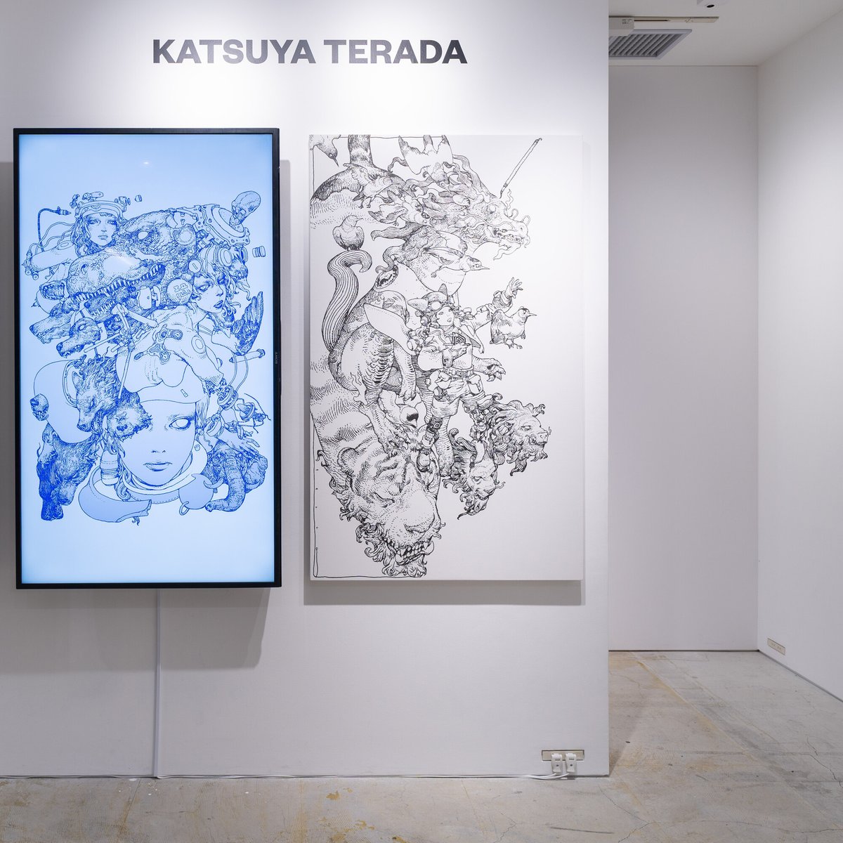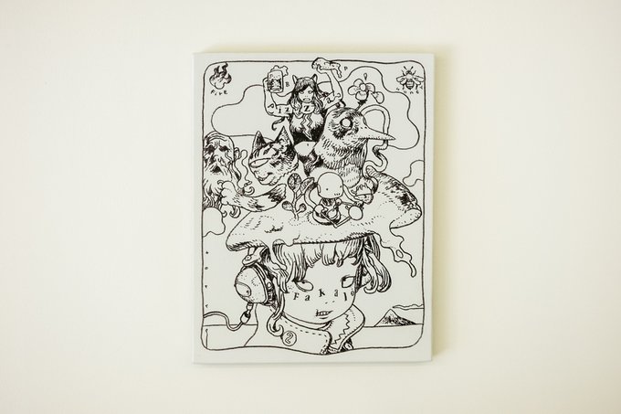 開催中の「トロイの木馬はユニコーンだった」。 初日は真っ白だったキャンバス。 2日間にわたり、#寺田克也 さんが #SonyParkMini で #ライブドローイング を行い、ひとつの作品が完成しました。 コーヒーとともに、その世界観に浸りながらゆったりとお過ごしください。 @trojan_horse @terra_da_k