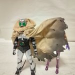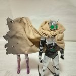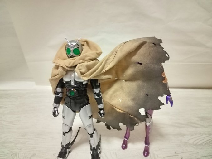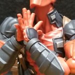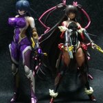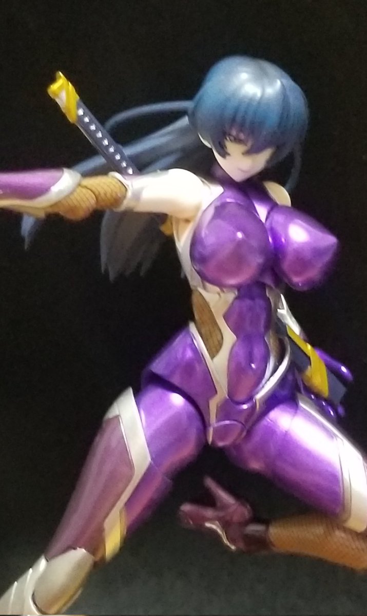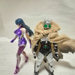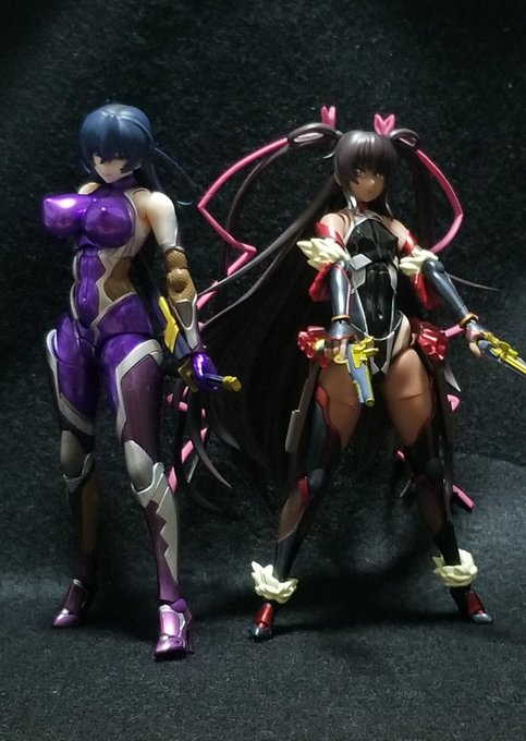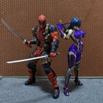 #夜のフィギュア撮影会 お題『フリー』 身構えるアサギとデッドプール。 アサギ「貴方日本刀も使うのね、しかも二刀流。」 デップー「そうよ、本気になった俺ちゃんは“MUSASHI MIYAMOTO”より強いぜ❗」 #デッドプール #対魔忍アサギ