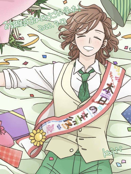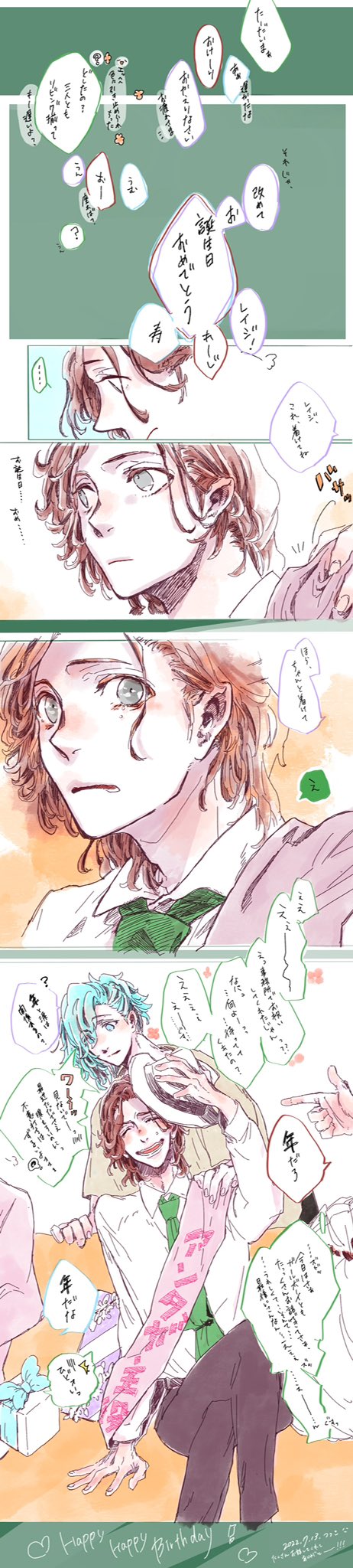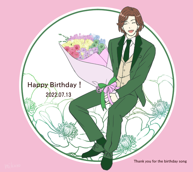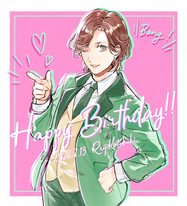 お祝い絵も描きたかったんだけど間に合わずで...遅刻してでもやっぱり描きたかった!!嶺二さんがこれからもずっと笑顔で幸せに過ごせますようにの気持ちを込めて。疲れすぎて字がボロボロ~(涙)嶺二さんおめでとうでした! #寿嶺二_BD2022