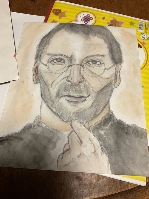 部屋漁ってたら、高校の時に描いたスティーブみっけ ちなみに、美術の授業のお題は「あなたの尊敬する人の顔」 #スティーブ・ジョブズ #イラスト #人物イラスト #尊敬する人 #イラスト好きな人と繋がりたい #イラスト練習中