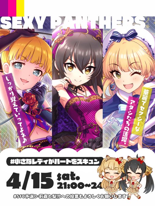 【4/15(土) 21:00~24:00】 ★コアタイム 23:00〜24:00★ #SfC予選D 開催記念! 予選Aに引き続き、セクシーパンサーズの一斉投稿企画を開催します🎉 SfC予選最終セクパン企画です!🔥 イラストやスクショ、応援コメントなど #小さなレディがハートをズキュン をつけてツイートしましょう❤️🔥❤️🔥❤️🔥
