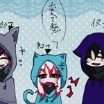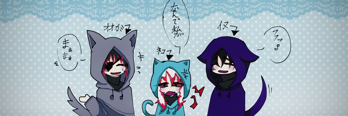 *これでも仲良し3人組ですw ❄️志摩津・龔芽(本名(ウルフ=リュウガ) 🐈縁結姫・明柧猫 💜眞鵜監・惡堕(本名(○○○・悠真) (3人は高1からの仲です。) #イラスト好きさんと繋がりたい #オリキャラ #小さな幸せを復讐鬼へ #イラスト