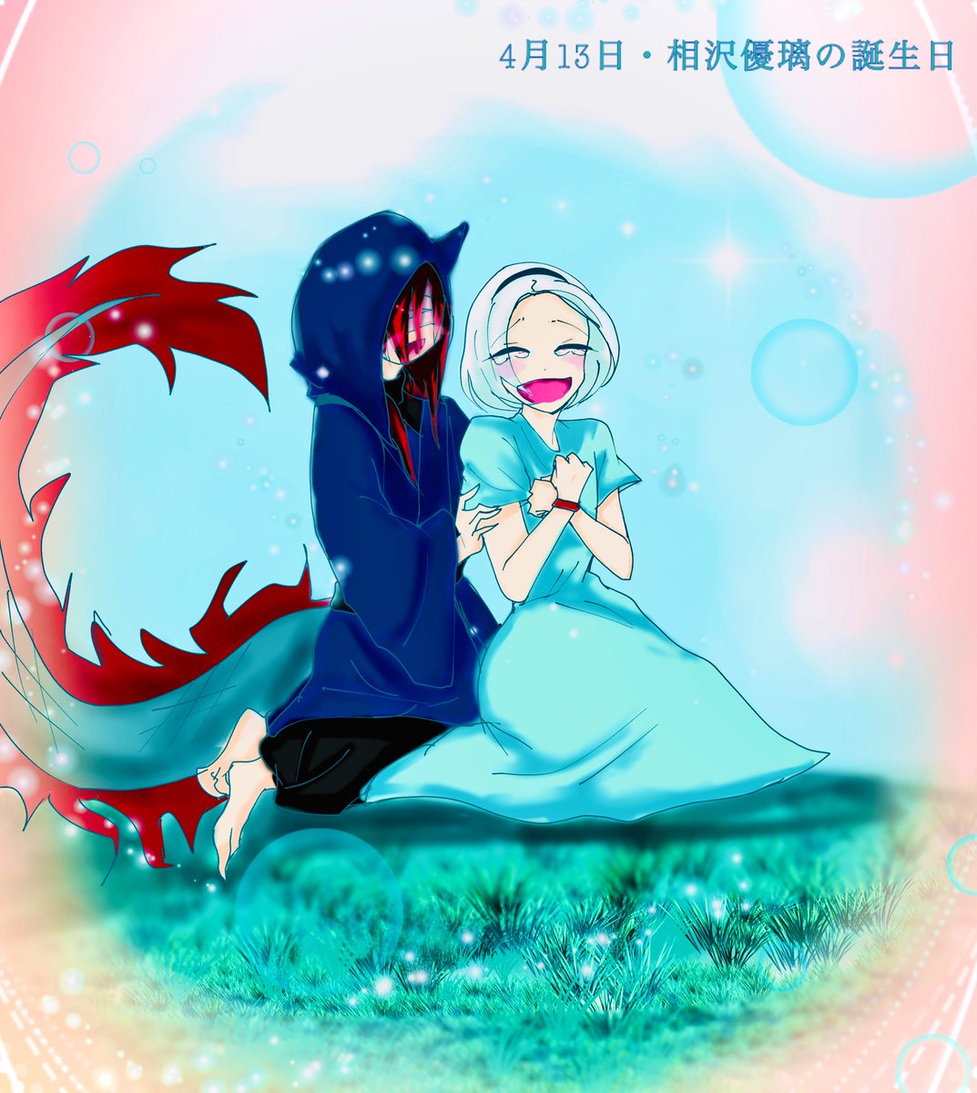 *4月13日は相沢優璃の誕生日🎉 『広い大空の野原に_』 優璃「ねえねえ?♪あなたはどうして顔隠してるの?」 ?「言いたくない…そんな事よりもっと遊ぼうよ♪」 #小さな幸せを復讐鬼へ #イラスト好きさんと繋がりたい #オリキャラ #イラスト