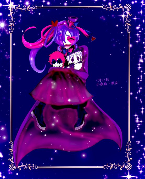 *4月23日は小夜鳥・殺女の誕生日🎉🎊 蒼樹「おや?あのぬいぐるみは僕達にそっくりですねニコッ」 カルロット「私、ご趣味が人形作成などお裁縫が得意でして、自作しました♪」 #イラスト #小さな幸せを復讐鬼へ #復讐鬼龍 #オリキャラ #イラスト好きさんと繋がりたい
