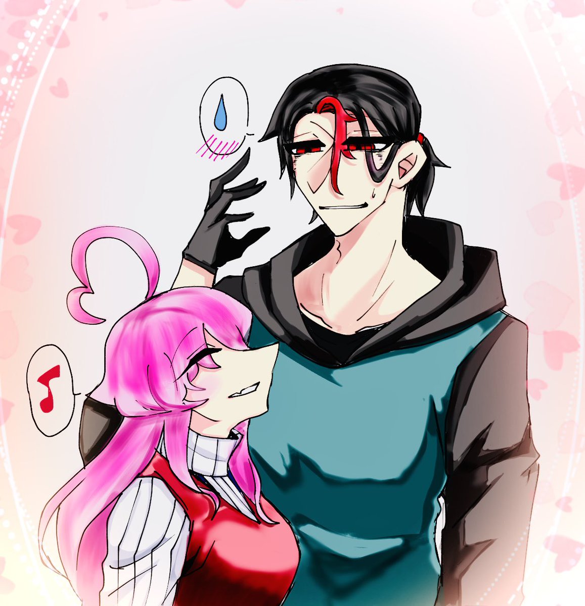 *失恋と💔片想い 龍絶(りゅうた)×愛(あい) ________________________ 龍絶「ごめんな💦愛ちゃん💦あと…なんで俺はポニーテール??💦」 愛「フフッ♪昔短い髪だった龍絶くんの姿見たくて♪」 #イラスト好きさんと繋がりたい #オリキャラ #小さな幸せを復讐鬼へ #イラスト