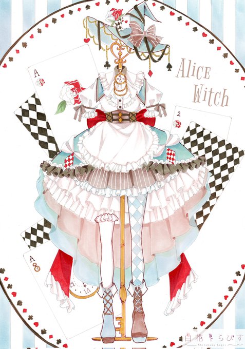 #コピック #小さな洋服店ナナイロリィタ 🌹Alice Witch🌹 童話のアリス×魔女×ロリィタがコンセプト🌸 以前描いた衣装デザインを元にした女の子verです😊 こちらは5/4から開催のアリス展2022(自由が丘)にて原画展示予定です!🙌