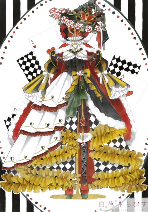 #コピック #小さな洋服店ナナイロリィタ 【Alice Witchシリーズ】 🌹Queen of Heart🌹 童話のアリス×魔女×ロリータがコンセプトです! 今回は「ハートの女王」がテーマ🌸華やかにデザインしてみました! 第1回目の「アリス」はリプ欄にあります🃏