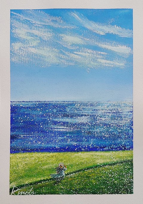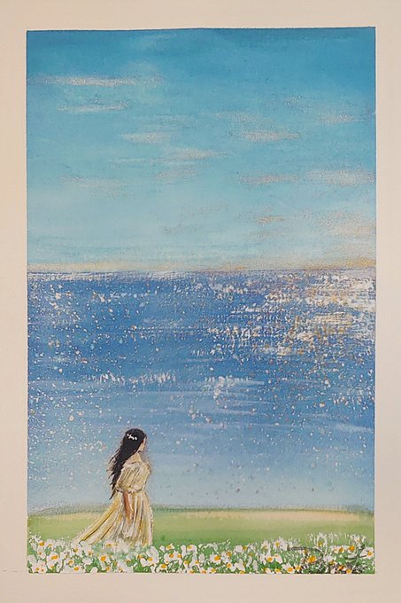 ハルがおわりのなぎさ 𖡼.𖤣𖥧𖡼. 1週間が始まりましたね🥰 皆様の毎日に素敵なことが 増えますように🍀✨ (ㅅ´ ˘ `)✨ 今週も宜しくお願いします (ᴗ͈ˬᴗ͈)⁾⁾✨ #芸術同盟 #絵描きさんと繫がりたい #水彩画 #小さめな癒しの景色画