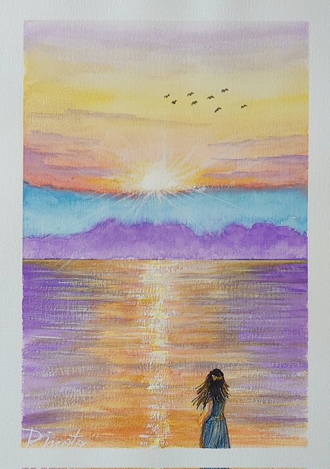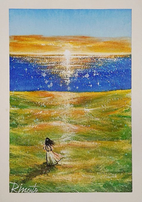 なつかとおもったよ 𖡼.𖤣𖥧𖡼. 本日は黄砂が飛来してると聞きました、大きな影響も無く 皆様がご無事で 過ごせますように🍀 (ㅅ´ ˘ `)✨ 今日も良い1日で あります様に🍀✨ #芸術同盟 #絵描きさんと繫がりたい #水彩画 #小さめな癒しの景色画