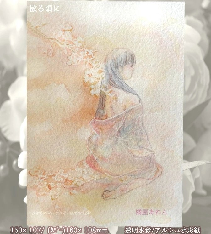 #散る頃に 通販 #小作品 こちらはポストカードサイズです。 気軽に原画をご覧いただけたらと このまま飾っていただけます。 ご縁がありますように🕊️ #アート好きな人と繋がりたい #乙女のうつろい #春 #桜 #illustration #透明水彩 twitter.com/AjisaiGallery/…