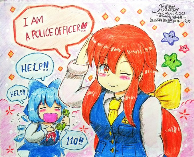 困ったときはいつでもお呼びください!☎️ #チルノ #深夜の真剣お絵描き60分一本勝負 (東方版・1594回目参加・お題フリー) #小兎姫 #東方版もうひとつの深夜の真剣お絵描き60分一本勝負 (もうひとつ版・597回目参加) (※11月24日お題)