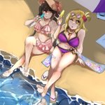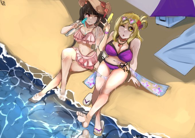 #アズールレーン #酒匂 #小原鞠莉生誕祭2023 #小原鞠莉誕生祭2023 #小原鞠莉 #lovelive #lovelive_sunshine #Aqours Commissioned art from @GenerallyToxic. Mari and Sakawa on a beach