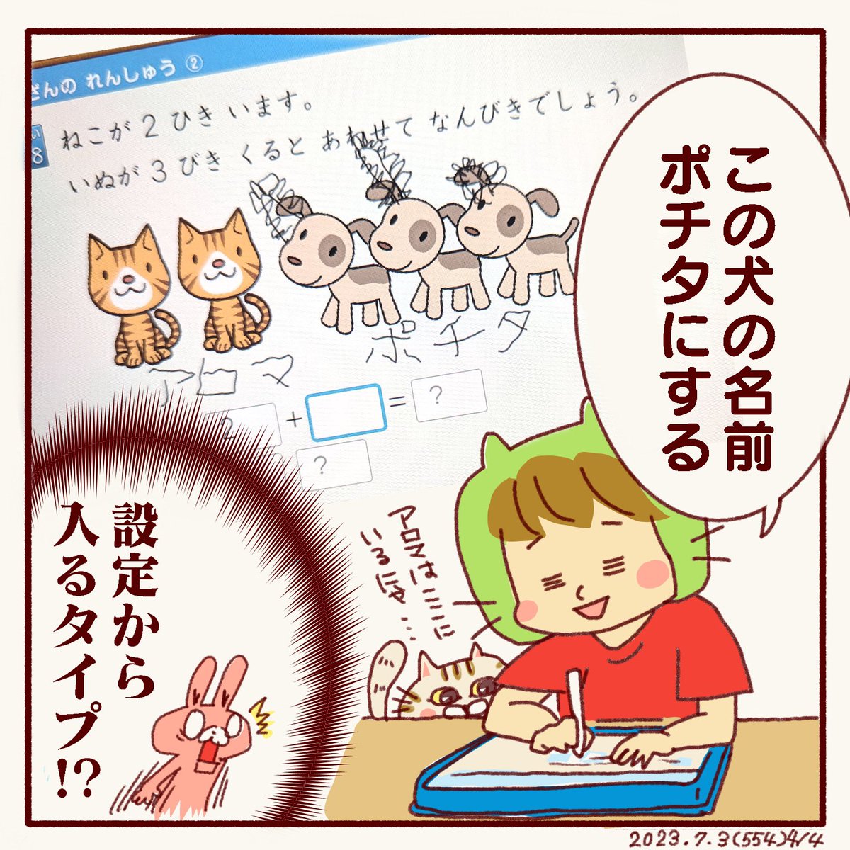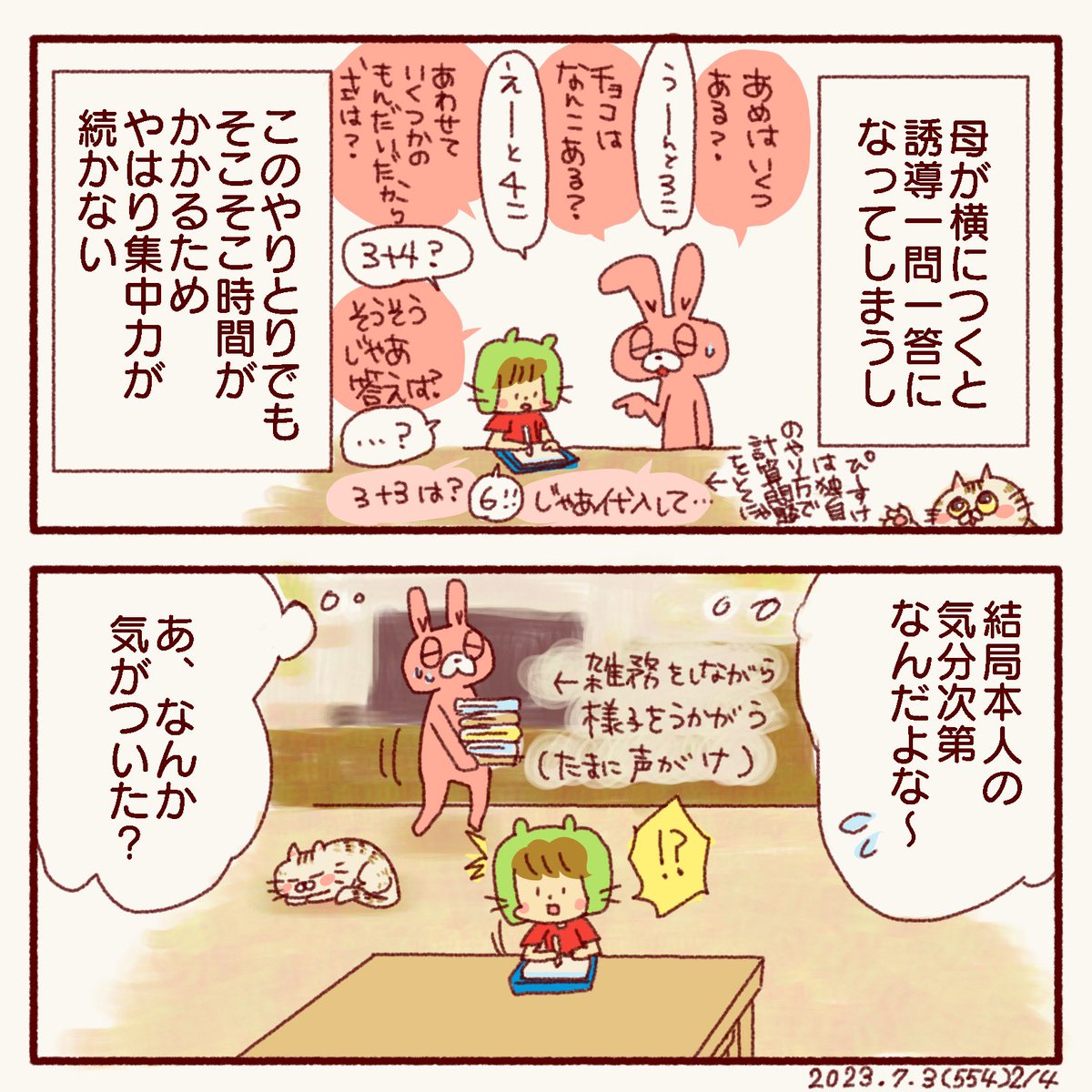 しばらく前から、『ママとハンバーグをつくりたい』と言っていたのでやってみました☺️ 冬休みの宿題でお手伝いの写真を撮影しないといけないので、それもついでに😊 #7歳 #小学1年生 #4コマ漫画 #ファミリーまんが #イラスト好きな人と繋がりたい #絵描きさんと繋がりたい #ゆるいキャラクター