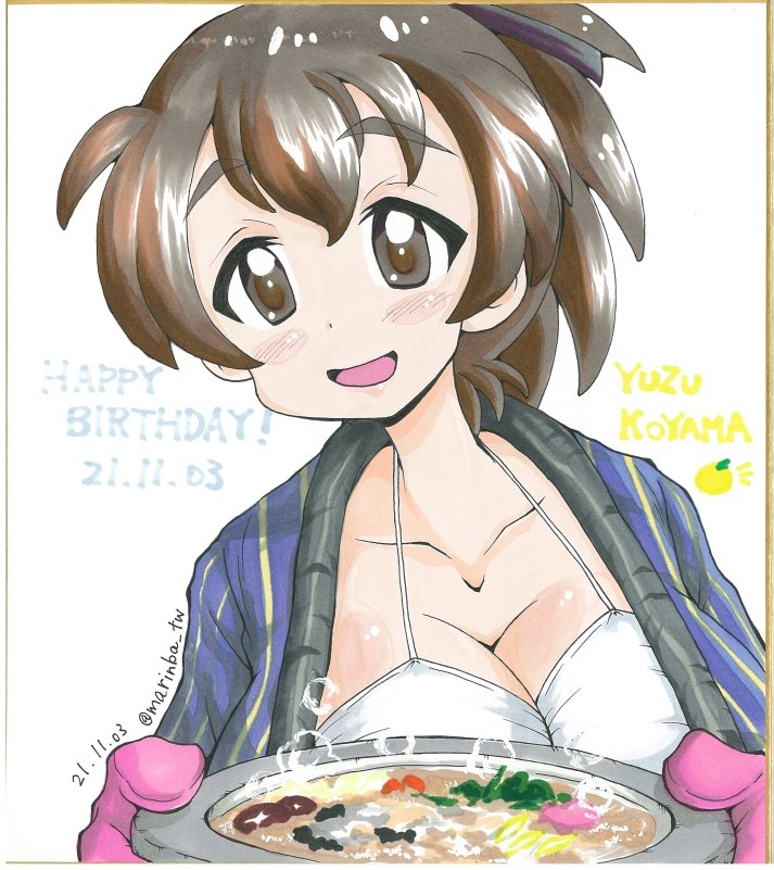 柚子ちゃん♥️ HAPPY♥️BIRTHDAY♥️ お誕生日おめでとうございます。 夜勤明けで、色紙に色をぬりました。 ガルパンで1番普通の女子高生だと思います。可愛いけど普通すぎて、他の個性的なキャラに埋もれてします。 最終章で活躍して欲しい。 #小山柚子生誕祭2022 #小山柚子生誕祭 #小山柚子誕生日