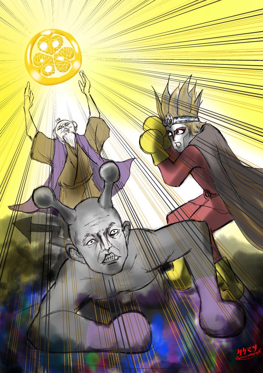 世を忍ぶ仮の姿同士は喧嘩になった そして、運悪くその場に発生した バイキングマンは巻き込まれてしまった… 「小峠じゃん」と八兵衛がつぶやいたとか つぶやかなかったとか 知らんけど #絵描きさんと繋がりたい #イラスト好きな人と繋がりたい #水戸黄門 #小峠英二 twitter.com/Quincampoix5/s…