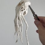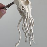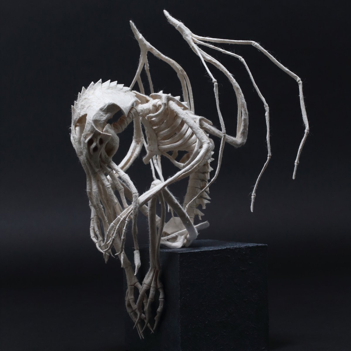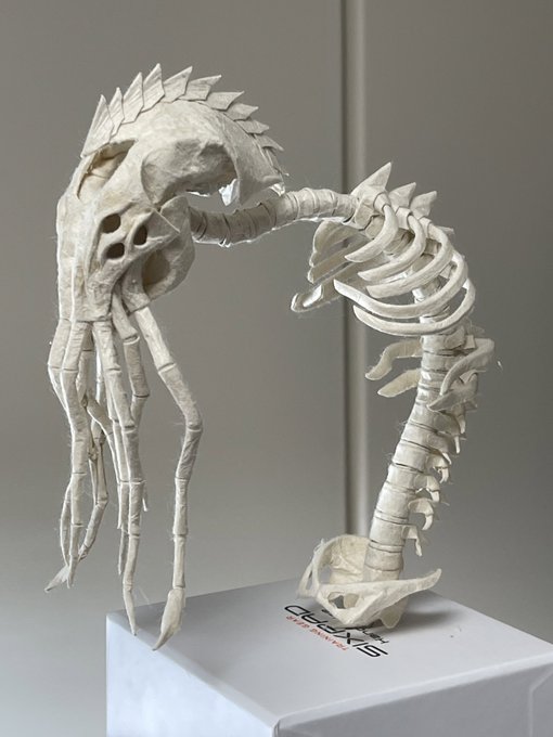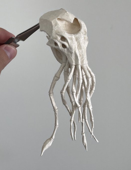 「邪神骨」 深い深い海の底から引き上げられた、白骨化した異形像 手にしたモノは圧倒的な力を得るが、像から背筋が凍る様な視線を感じ、気を抜くと発狂してしまう 埼玉県小川町の「小川和紙」を使用 和紙の肌を骨に見立て、紙の強さとしなやかさ活かして造形しました #小川和紙 #和紙を捏ねています