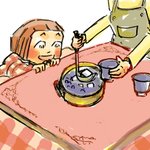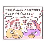 あずきがゆ 🍟「おなかがほこほこするなあ😊」 🍩「ほこほこ😊」 #ぽちゃ日和 #イラスト好きな人と繋がりたい #絵描きさんと繋がりたい #絵柄が好みって人にフォローされたい #4コマ #食べ物イラスト #小正月 #小豆粥 #あずき #おかゆ
