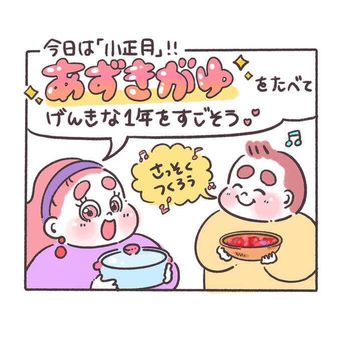 おはようございます😊 今日は小正月✨ 小豆粥を食べて疫病を避ける! と言いたいところだけど、 小豆もお粥もあまり好きではないすんこであった🤣 今日も一日よろしくお願いします🙌 #イラスト #小正月 #絵描きさんと繋がりたい