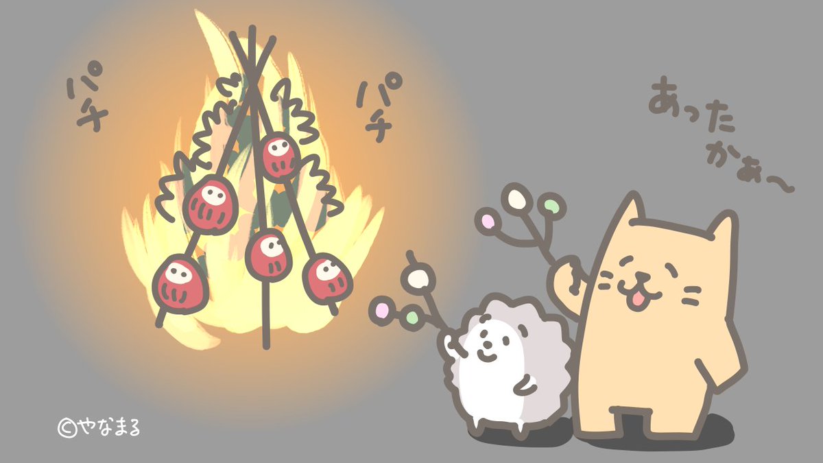 本日は「#小正月」です♪地域によって、どんど焼き、左義長などとよばれる火祭りの行事があります。 体もぽかぽか。心もぽかぽか。 #イラスト #今日は何の日 #絵描きさんと繋がりたい #イラスト好きさんと繋がりたい #ゆるいイラスト #illustration #アトリエの系譜