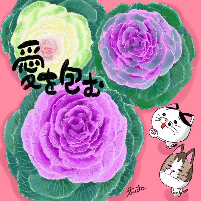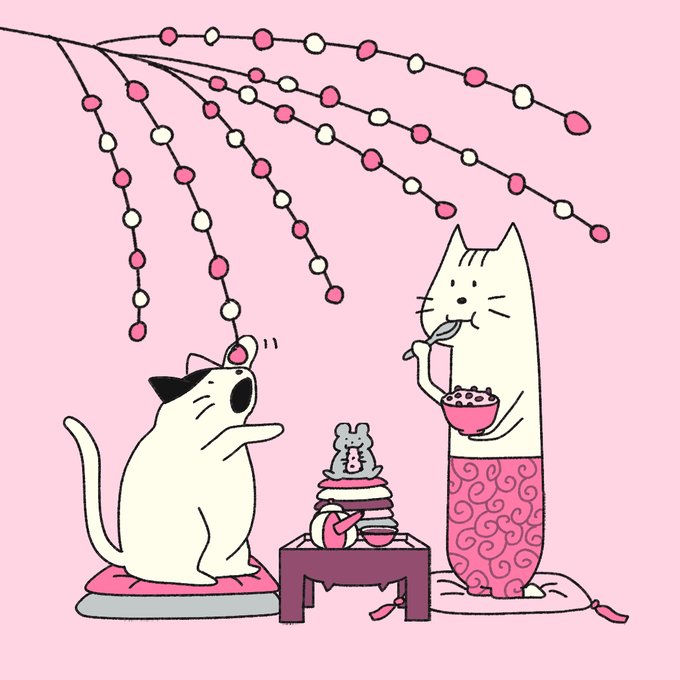 🐱🐱 #小正月 ホントに日本にはたくさんの行事があって…覚えられません🤣 みんなが幸せに、毎日元気に過ごせますように。 切に願います😌 #イラスト #illustration #イラスト好きな人と繋がりたい #猫 #cat #ねこ #猫の居る暮らし #絵描きさんと繋がりたい #葉牡丹 の花言葉が素敵すぎます😳