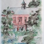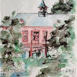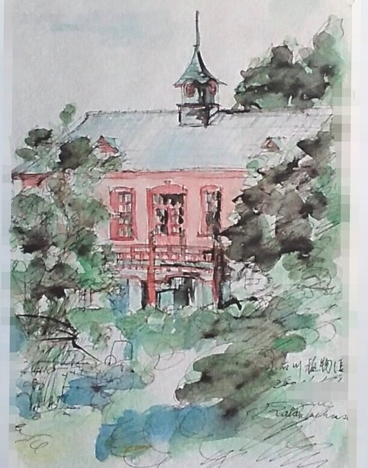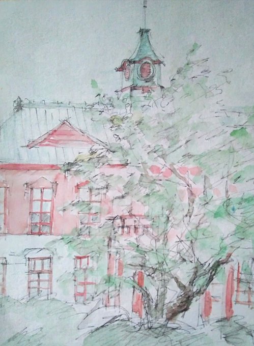 #りえこさん冒険の思い出 その655 東京。北の丸公園の先、文京区に入ると小石川植物園が。植物園はもちろん散策に素晴らしいが、建物も赤と白でとってもユニーク〜かな? #絵 #旅 #水彩画 #スケッチ #watercolor #小石川植物園 minne.com/ritakahashi4 rieko44.base.shop