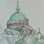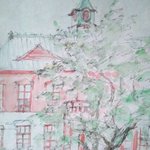 #りえこさん冒険の思い出 その656 東京。文京区に入ると小石川植物園が。植物園も素晴らしが、歴史がありそうなのに、赤と白というモダンな造りの建物がどうしても気になる〜かな? #絵 #旅 #水彩画 #スケッチ #watercolor #小石川植物園 minne.com/ritakahashi4 rieko44.base.shop