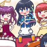今月のバーベナイラストー。 むっちゃんバースデーの延長で綾香様と愛花ちゃんによるむっちゃんのバースデーパーティーを描きました♪ インディさんのゲームが見つからなかったようで、お嬢が全部買い占めたそうです🤭 #アリスギア #アリスギアお絵かき #小芦睦海生誕祭
