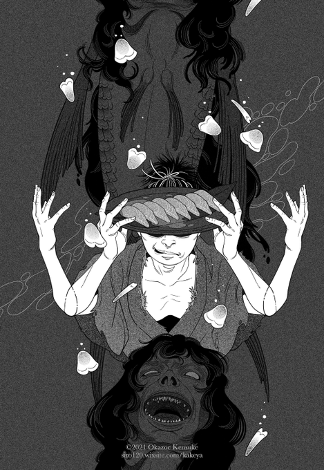 本日11月22発売の『小説新潮2021年12月号』掲載 乾緑郎 さん『おどろかし 戯場國の怪人』第六回の扉絵を引き続き担当いたしました。 shinchosha.co.jp/shoushin/ この世ならざるものを喰む #illustration #小説新潮 #Japanese
