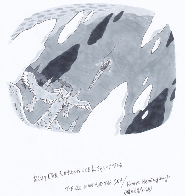 小説の絵を描くだけシリーズⅡ-9 #老人と海/#ヘミングウェイ #Hemingway 読んだ小説でイメージした絵を描くだけの連載。好きな台詞または文章も添えたりして。 #小説読んでイラスト描く #小説が好き #小説好き #小説 #イラスト好きな人と繋がりたい #絵描きさんと繫がりたい #絵描き