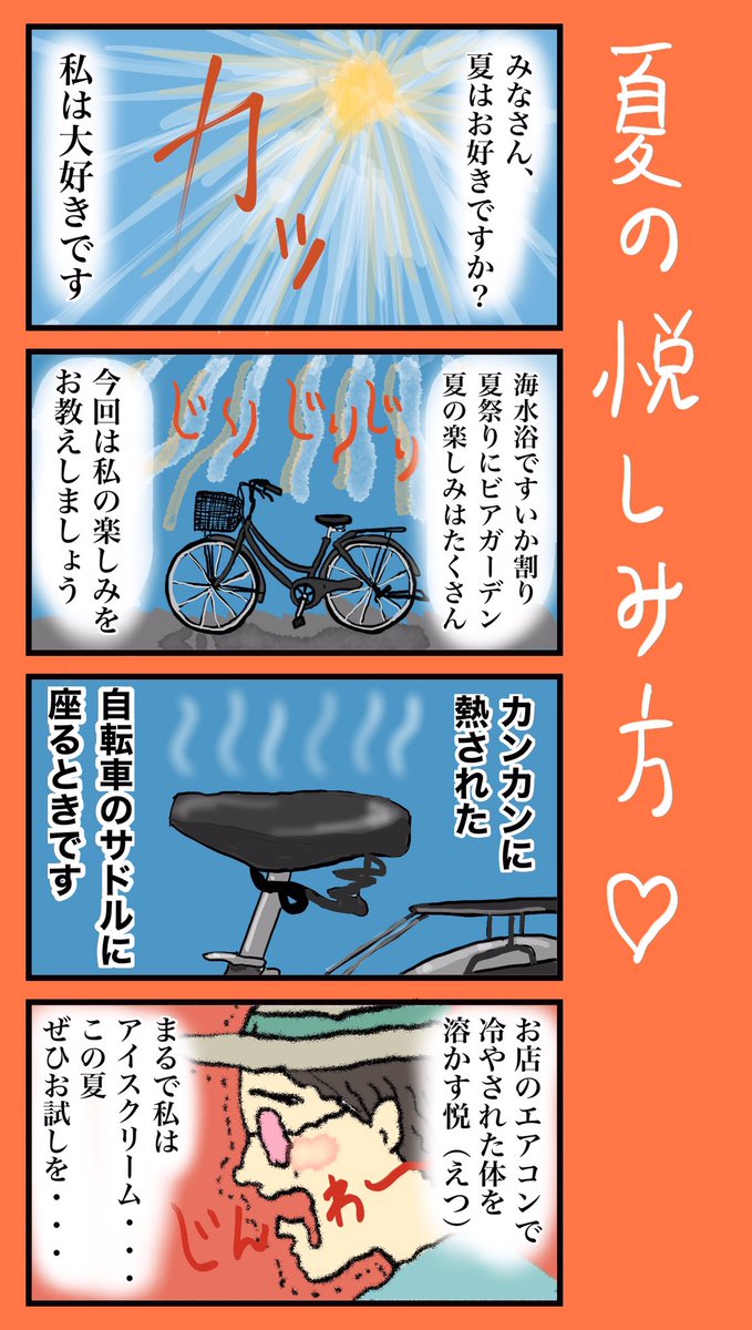 「夏の悦しみ方♡」 #小野寺ずるのド腐れ漫画帝国 (毎週月曜夜更新) 最新お漫画はこちら🔻 nikkan-spa.jp/1846222 #漫画が読めるハッシュタグ #4コマ #4コマ漫画 #節電