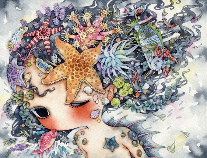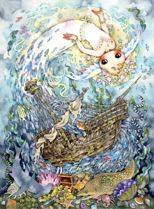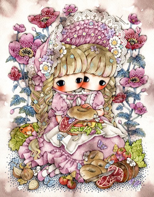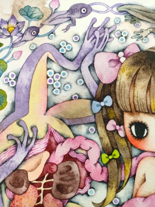 あまり早くに告知しても何なので言ってませんでしたが、実は次の個展は2024年3月7日からに決定しました‼️(ヴァニラ画廊) 一年切ってるー😱 という訳で、今年から描いてる絵はほぼ個展用です。 先日の新作もそう。 全体図をふわっと載せてみる… #少女主義的水彩画家たま