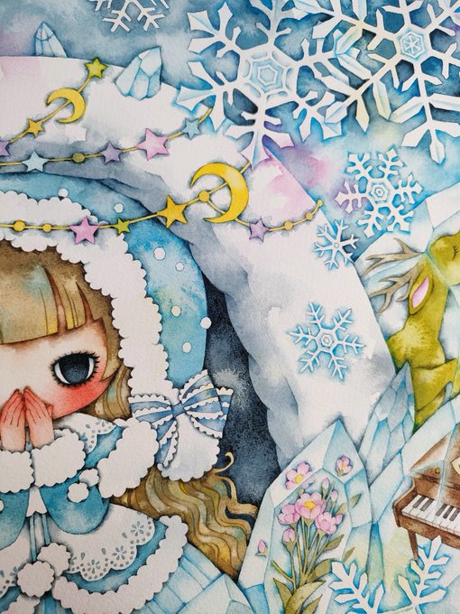 先日完成した新作チラ見せ❄️ 実家で昔、庭に作ったかまくらを冷蔵庫代わりに使っていたのを思い出した。 雪で冷やした物達は、なぜかちょっと優しい味になる気がしました。 #透明水彩 #少女主義的水彩画家たま