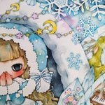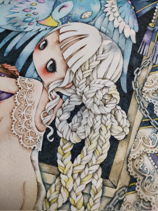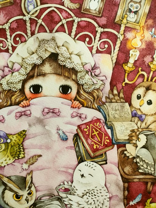 新作完成❣️ 背景がすごくかわいくなったので、ちょっと多めにチラ見せ♪ 全貌は来年3月の個展(ヴァニラ画廊)にて発表いたします。 どうぞお楽しみに!🦉 #透明水彩 #少女主義的水彩画家たま