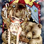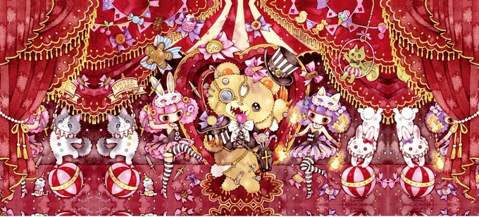 近日リリースRoyal Princess Aliceたまコラボ最新作【Sweet Magic】のイラストプリント🎪🐻 スカートを一周する横長の絵を描き下ろしました! #透明水彩 #少女主義的水彩画家たま twitter.com/fukasawamidori…